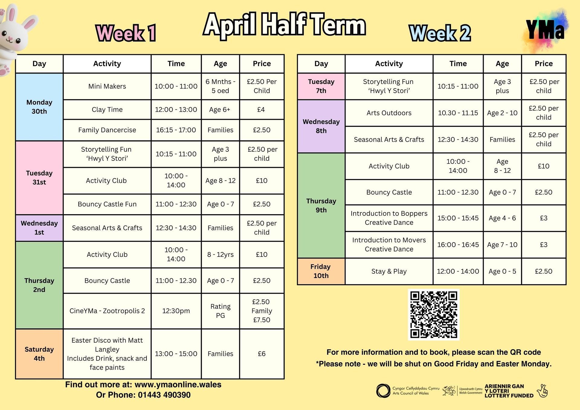 Cymerwch gipolwg ar yr hyn sydd gennym ni'n digwydd dros Hanner Tymor y Pasg! O gelf a chrefft i sesiynau dawns i ffilmiau sinema - mae rhywbeth i bawb. Mae archebu'n hanfodol. Cliciwch ar y ddolen isod i gael golwg agosach ar ein rhaglen.